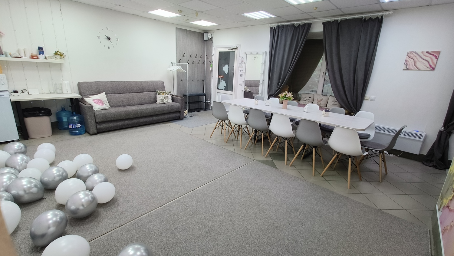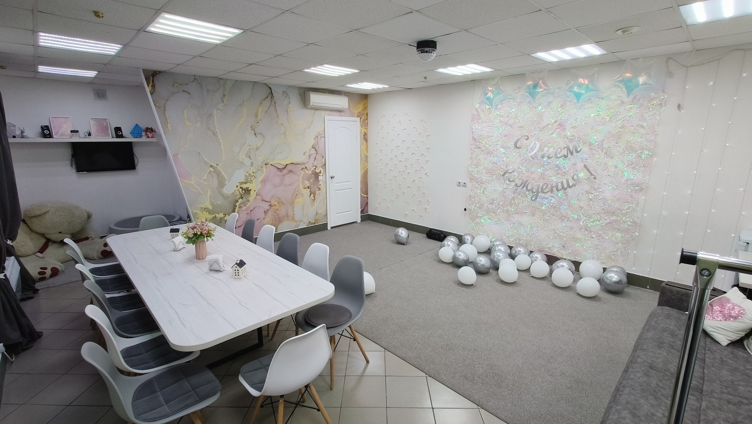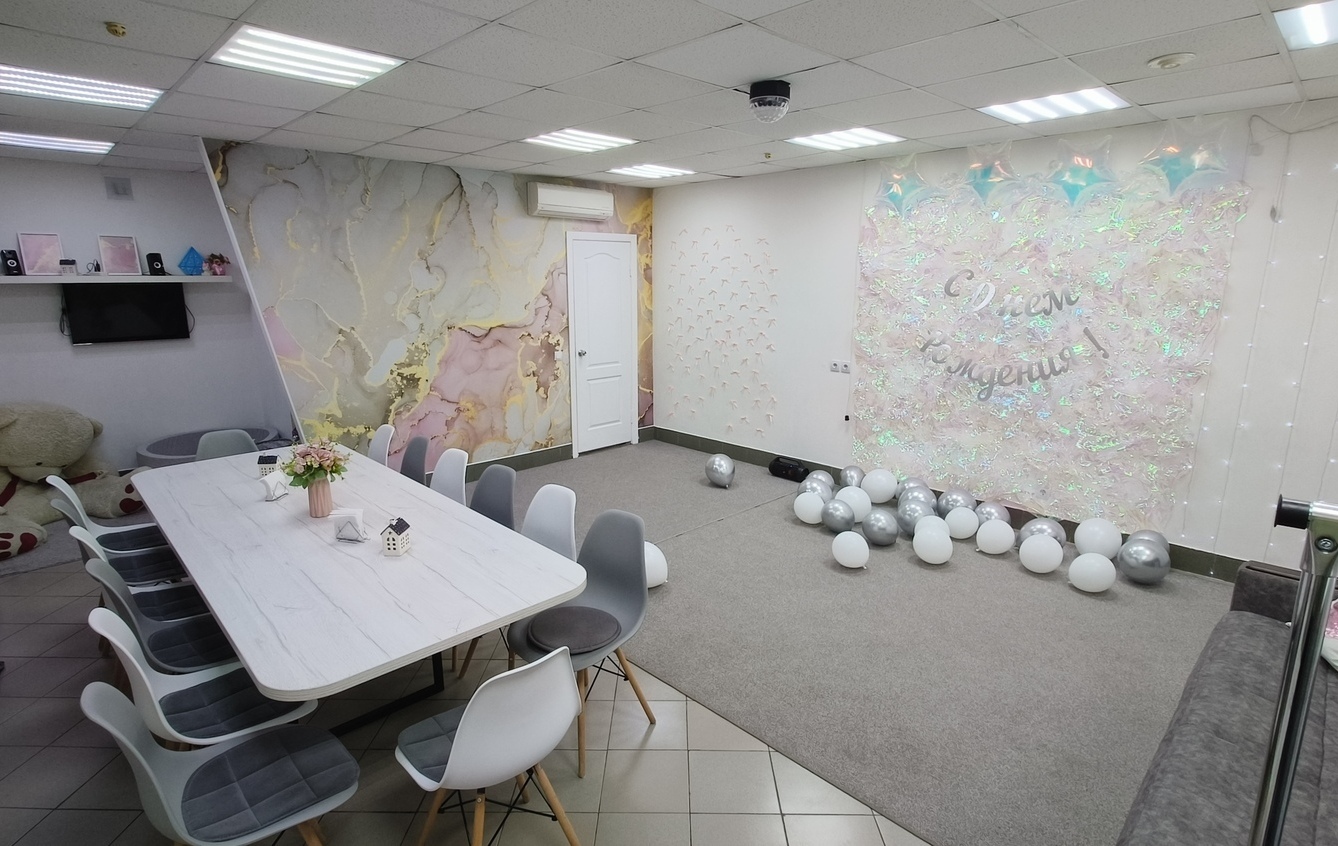 Светлый и уютный зал для детских праздников, дней рождений, фотосессий, девичников, квартирников, семинаров, творческих мастер-классов.